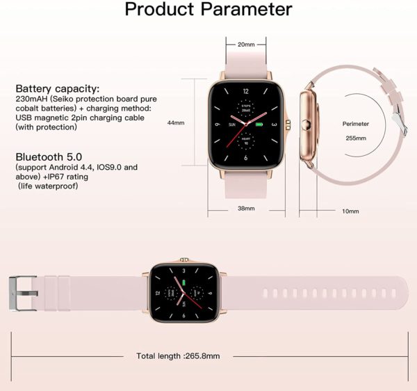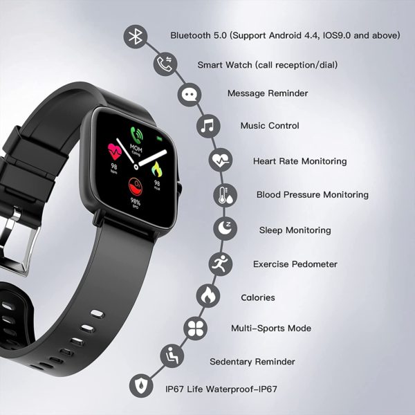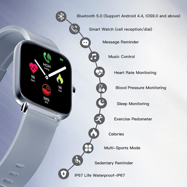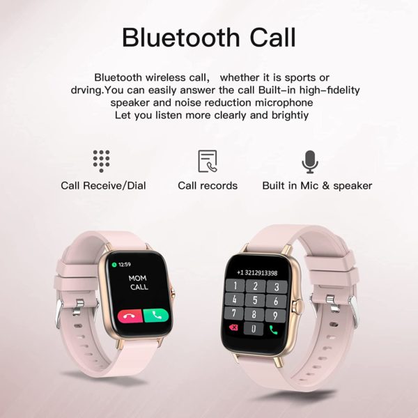 Smart Watch 2021(Call Receive/Dial), 1.72 in HD Full Touch Screen Smartwatch Fitness Tracker with Call/Text/Heart Rate/Blood Pressure/Sleep Step Tracking, Fitness Watch for Android/iOS, Women Man